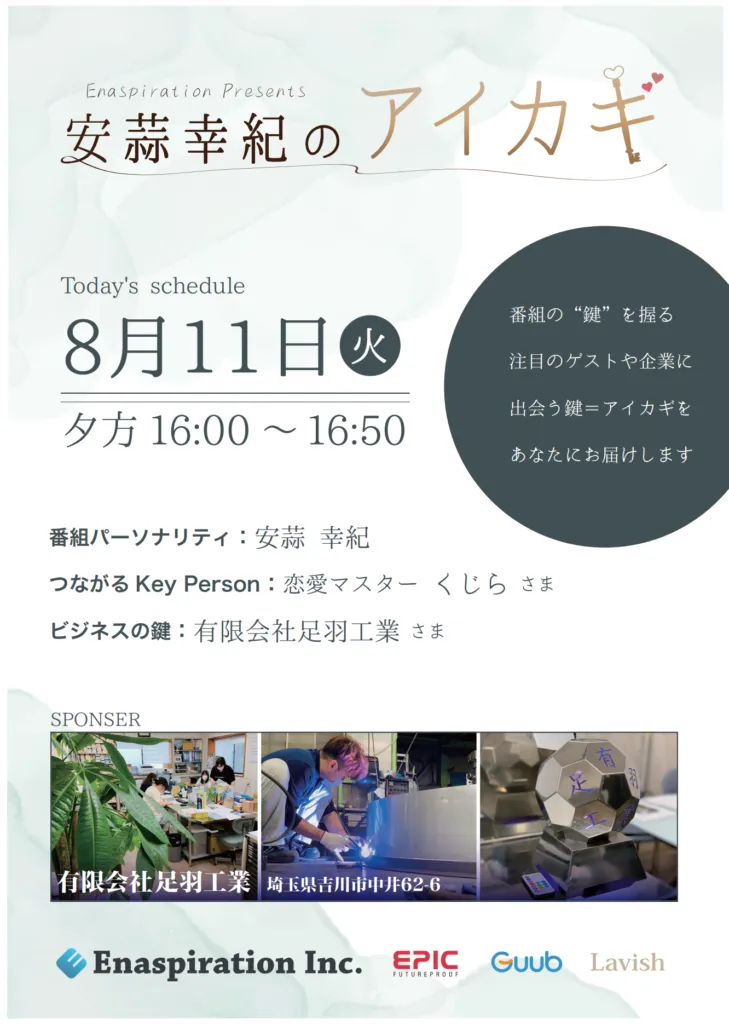 | 16:06 | つながるKey Personゲスト「くじら様」Key Word:自己肯定感 |
