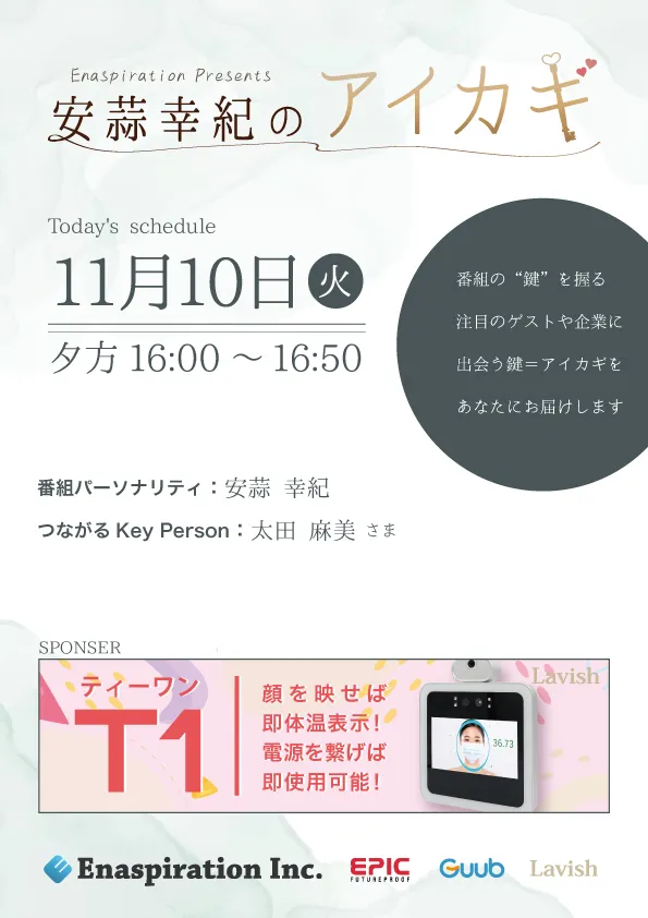 | 16:06 | つながるKey Personゲスト「太田麻美様」Key Word:太田麻美さん |
