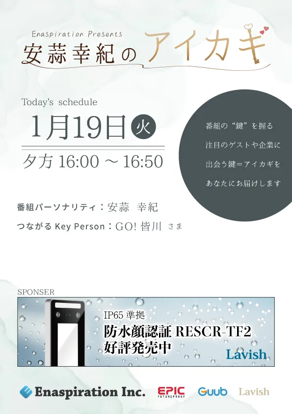 | 16:06 | つながるKey Personゲスト「GO!皆川 様」 |