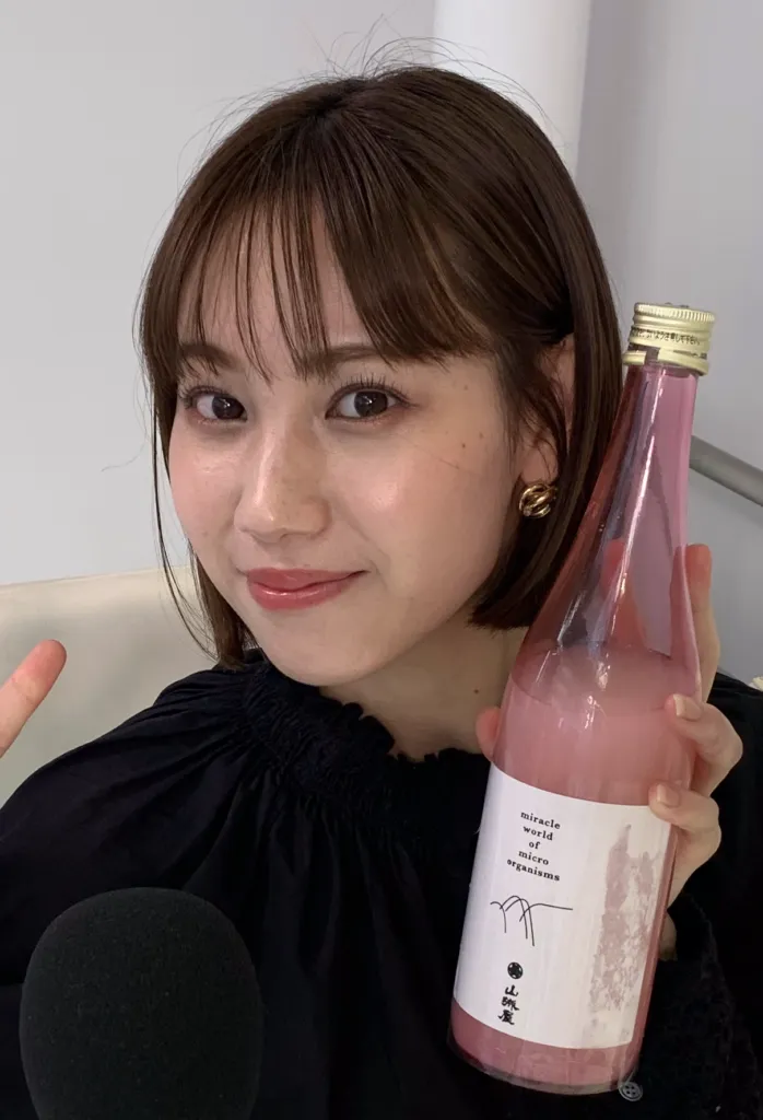 今週は、なんと4回目のご出演となる吉本沢46の高野祐衣さんにお越しいただきました!今回は唎酒師と酒ディプロマの資格を持つ高野さんと、お互いのオススメの日本酒を飲みながら女子トーク♪まずは高野さんオススメの、ピンクの可愛い瓶のお酒から頂きました!