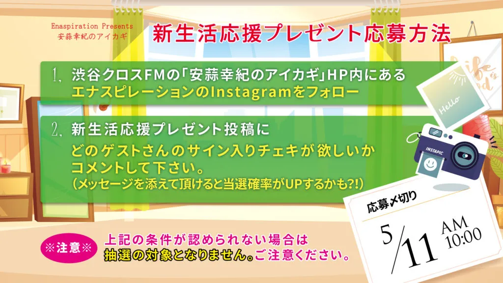 ☆Enaspiration Presents 安蒜幸紀のアイカギ 新生活応援!チェキプレゼント応募企画♥