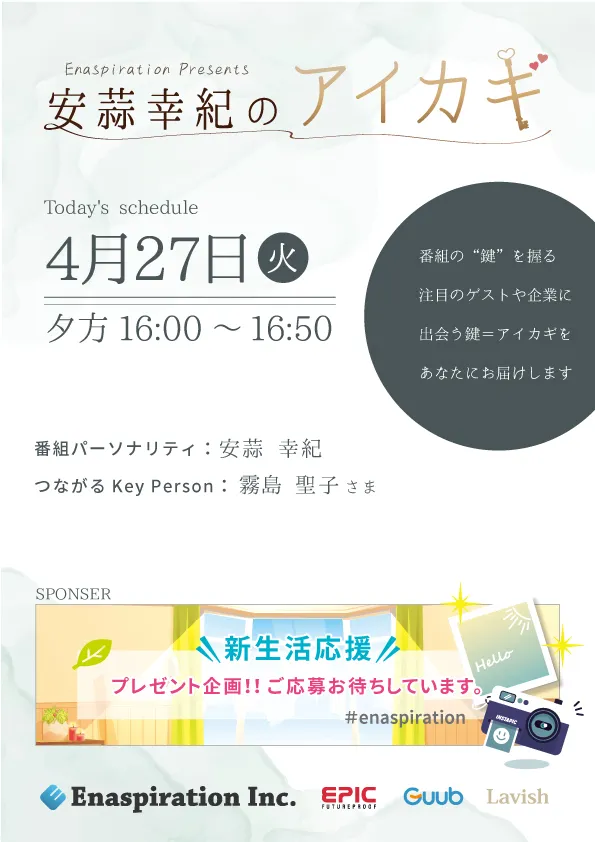 ☆Enaspiration Presents 安蒜幸紀のアイカギ 新生活応援!チェキプレゼント応募企画♥