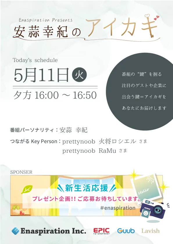 番組の最後には、お二人が所属する株式会社コプルトが開催するオーディションのお知らせをしてくださいました!お二人のように、一つの分野ではなく多分野で活躍したい!という方は、合格したら多方面での活動が約束されているこのオーディションに応募してみてはいかがでしょうか?