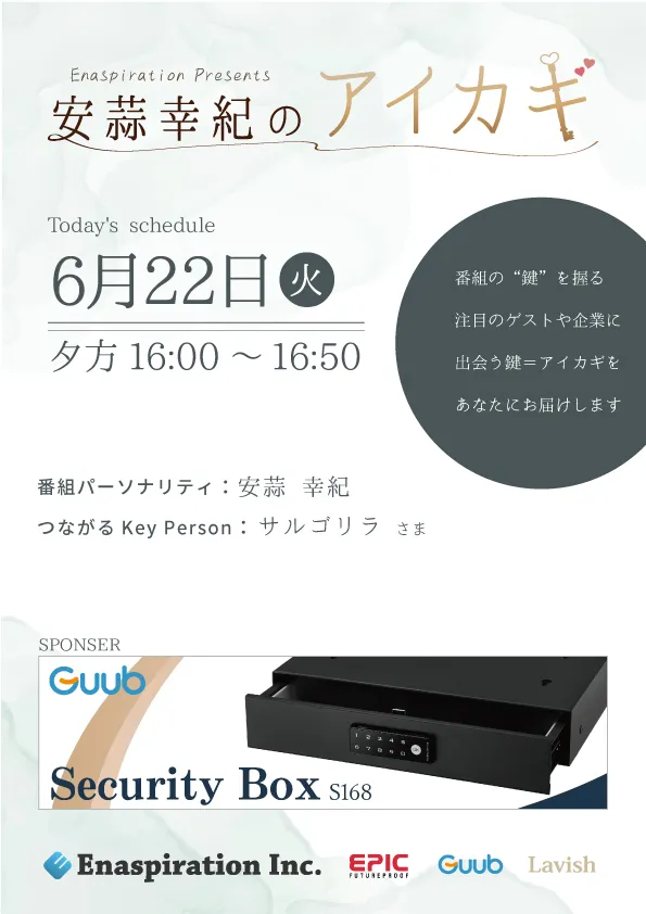 16:39****つながるKey Person**ゲスト「サルゴリラ様」Key Word:幼馴染