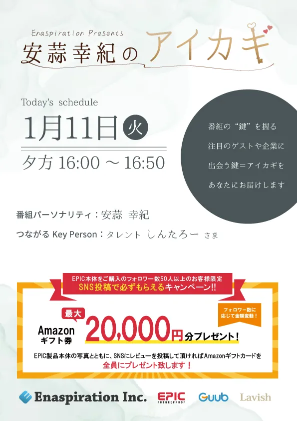 購入したEPIC製品をご自身で撮影しSNSに投稿すると、もれなくAmazonギフトカードをプレゼント★