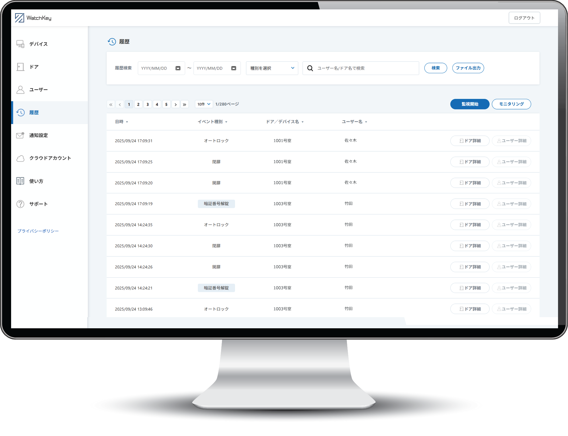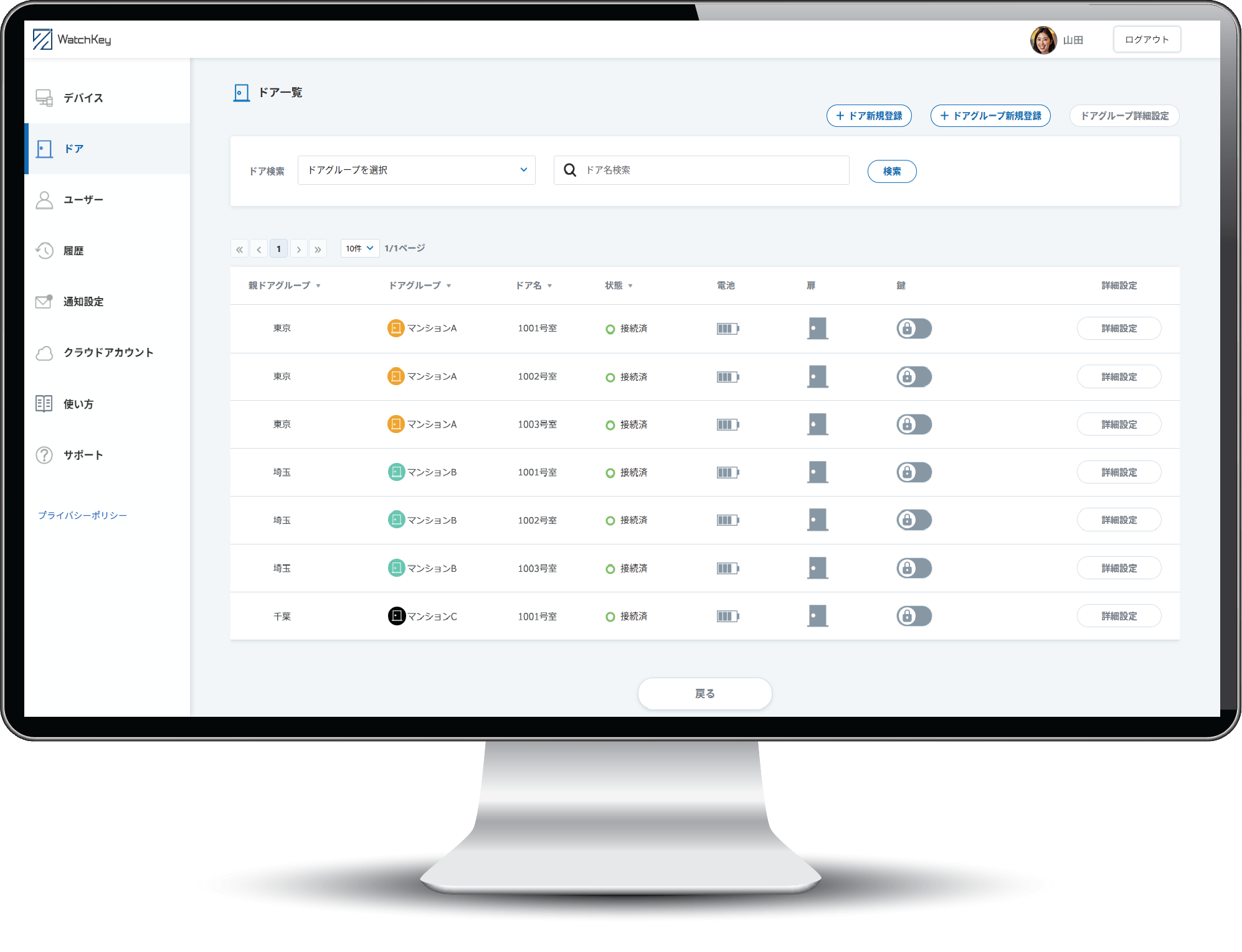 マンションやオフィスのドアに設置したスマートロックを一括管理することができます。